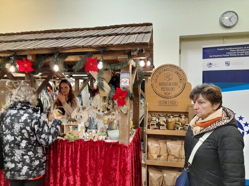 Na obficie zaopatrzonych stoiskach wystawców pojawiły się m.in.: miody, sery, konfitury, pierniki czy lokalne nalewki a także ręcznie malowane bombki, stroiki, drewniane zabawki, biżuteria artystyczna, naturalne kosmetyki. Wszystkie prezentowane produkty wytwarzane są zgodnie z lokalnymi recepturami, przekazywanymi z pokolenia na pokolenie.